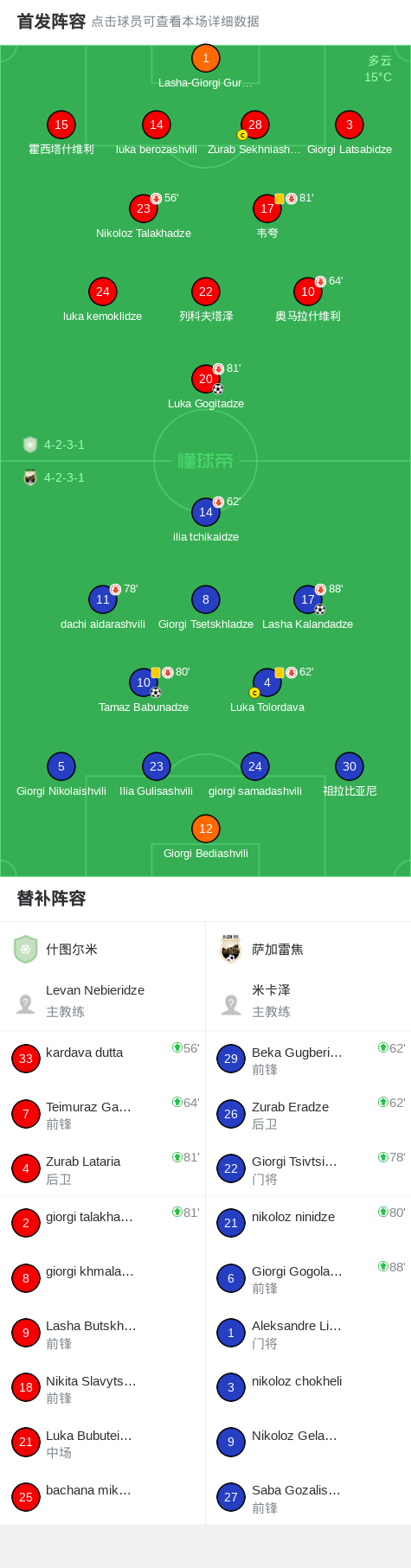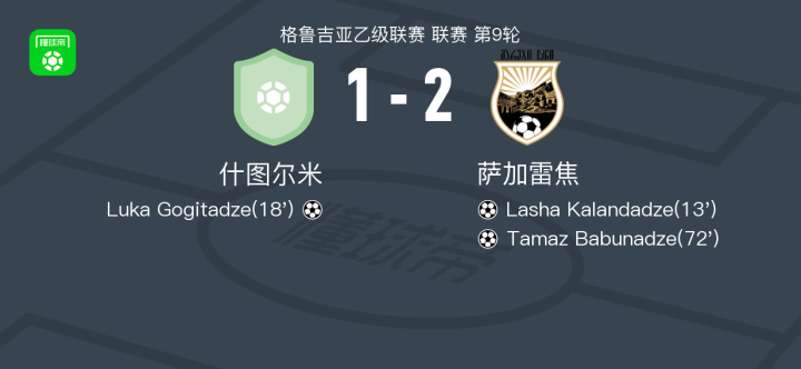 萨加雷焦2-1什图尔米,Tamaz Babunadze建功,Lasha Kalandadze破门