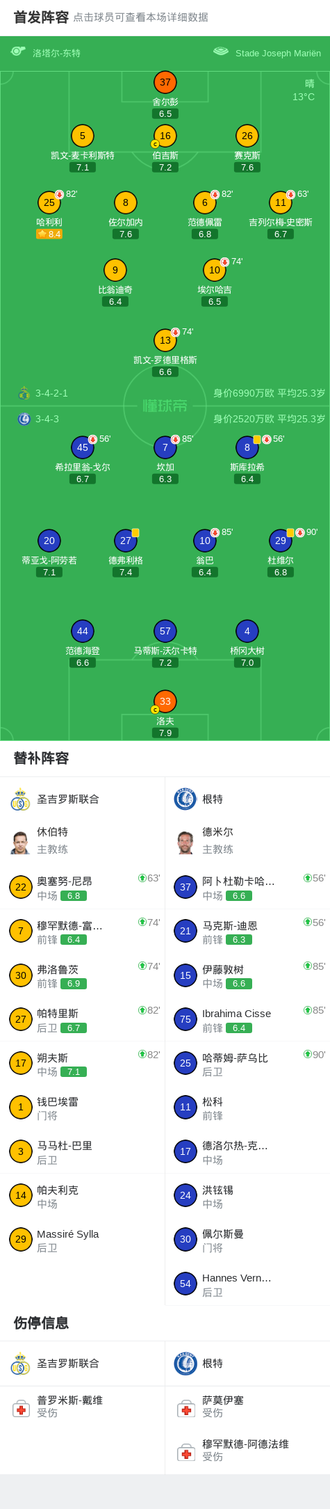 圣吉罗斯联合0-0根特,赛克斯错失良机 足球资讯 发布时间: 2026年4月23日 阅读时间: 少于1 分钟 FacebookXPinterestWhatsApp 圣吉罗斯联合0-0根特,赛克斯错失良机 北京时间4月23日比利时足球甲级联赛 争冠组 第34轮,圣吉罗斯联合主场对阵根特。最终比分圣吉罗斯联合 0–0 根特。 点击查看本场比赛详细数据>> 点击查看比甲完整积分榜>> 球队阵容 技术统计 FacebookXPinterestWhatsApp 1823100https://1823100.com 红单推荐 013 英超 桑德兰vs诺丁汉 红单推荐 2026年4月24日 014 西甲 贝蒂斯vs皇马 红单推荐 2026年4月24日 005 西甲 巴列卡诺vs西班牙人 红单推荐 2026年4月23日 003 西甲 莱万特vs塞维利亚 红单推荐 2026年4月23日 015 西甲 巴萨vs塞尔塔 红单推荐 2026年4月22日 热门资讯 约基奇第198次三双!掘金大胜灰熊豪取10连胜 穆雷26+7+5 篮球资讯 2026年4月9日 三人20+!火箭21分逆转太阳7连胜 KD24分阿门22+11+8 篮球资讯 2026年4月8日 萨拉戈萨U19 0-0乌德山U19,双方握手言和 足球资讯 2026年4月12日 002 欧协联 巴列卡诺vs雅典AEK 红单推荐 2026年4月9日 004 欧冠 巴萨vs马竞 红单推荐 2026年4月8日