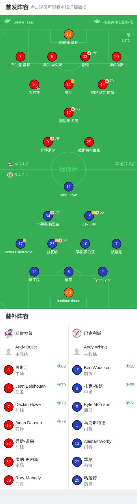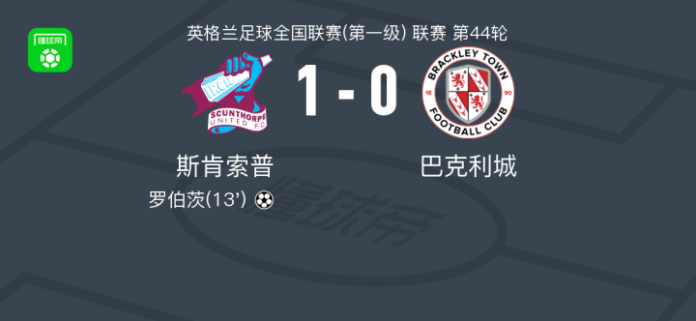 斯肯索普1-0巴克利城,罗伯茨一击制胜 足球资讯 发布时间: 2026年4月12日 阅读时间: 少于1 分钟 FacebookXPinterestWhatsApp 斯肯索普1-0巴克利城,罗伯茨一击制胜 北京时间4月11日英格兰足球全国联赛(第一级) 联赛 第44轮,斯肯索普主场对阵巴克利城。斯肯索普罗伯茨破门。最终比分斯肯索普 1–0 巴克利城。 点击查看本场比赛详细数据>> 精彩瞬间 第13分钟,斯肯索普球员罗伯茨打入一球。 球队阵容 技术统计 FacebookXPinterestWhatsApp 1823100https://1823100.com 红单推荐 001 意甲 莱切vs佛罗伦萨 红单推荐 2026年4月20日 003 英超 水晶宫vs西汉姆联 红单推荐 2026年4月20日 019 英超 曼城vs阿森纳 红单推荐 2026年4月19日 007 英冠 伊普斯维奇vs米德尔斯堡 红单推荐 2026年4月19日 009 挪超 博德闪耀vs奥勒松 红单推荐 2026年4月18日 热门资讯 001 欧联杯 塞尔塔vs弗莱堡 红单推荐 2026年4月16日 002 欧联 诺丁汉vs波尔图 红单推荐 2026年4月16日 雷帕斯3-2逆转基芬,oliver helttunen、Timur Saltykov破门 足球资讯 2026年4月19日 铁人文明观赛倡议书:同心兴东北,场上是对手,场下是兄弟 足球资讯 2026年4月20日 足球报:深圳青年人靠“亲情牌”签下了罗德里格与梁诺恒 足球资讯 2026年4月20日