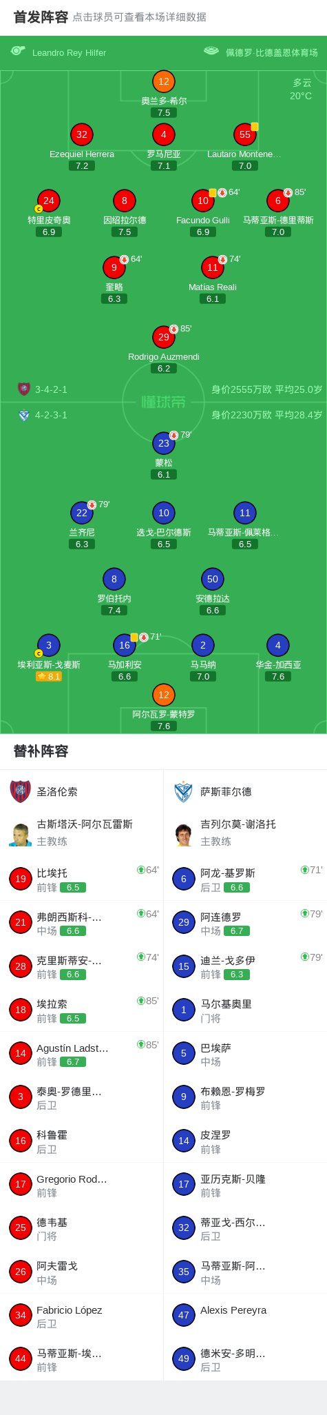 圣洛伦索0-0萨斯菲尔德,双方互有攻守 足球资讯 发布时间: 2026年4月21日 阅读时间: 少于1 分钟 FacebookXPinterestWhatsApp 圣洛伦索0-0萨斯菲尔德,双方互有攻守 北京时间4月21日阿根廷足球超级联赛 春季联赛 第15轮,圣洛伦索主场对阵萨斯菲尔德。最终比分圣洛伦索 0–0 萨斯菲尔德。 点击查看本场比赛详细数据>> 点击查看阿超完整积分榜>> 球队阵容 技术统计 FacebookXPinterestWhatsApp 1823100https://1823100.com 红单推荐 001 意甲 莱切vs佛罗伦萨 红单推荐 2026年4月20日 003 英超 水晶宫vs西汉姆联 红单推荐 2026年4月20日 019 英超 曼城vs阿森纳 红单推荐 2026年4月19日 007 英冠 伊普斯维奇vs米德尔斯堡 红单推荐 2026年4月19日 009 挪超 博德闪耀vs奥勒松 红单推荐 2026年4月18日 热门资讯 001 欧联杯 塞尔塔vs弗莱堡 红单推荐 2026年4月16日 雷帕斯3-2逆转基芬,oliver helttunen、Timur Saltykov破门 足球资讯 2026年4月19日 002 欧联 诺丁汉vs波尔图 红单推荐 2026年4月16日 阿韦洛亚:卡马文加拥有我和俱乐部的信任,希望他待很多年 足球资讯 2026年4月20日 还能这么玩,奥德里奥索拉夺冠后把女儿塞进了国王杯奖杯里 足球资讯 2026年4月20日