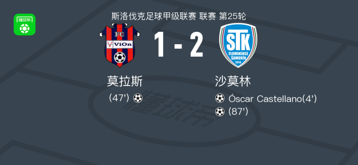 沙莫林2-1莫拉斯 足球资讯 发布时间: 2026年4月18日 阅读时间: 少于1 分钟 FacebookXPinterestWhatsApp 沙莫林2-1莫拉斯 北京时间4月18日斯洛伐克足球甲级联赛 联赛 第25轮,莫拉斯主场对阵沙莫林。沙莫林Óscar Castellano破门。最终比分莫拉斯 1–2 沙莫林。 点击查看本场比赛详细数据>> 精彩瞬间 第4分钟,沙莫林球员Óscar Castellano打入一球。 第47分钟,莫拉斯球员打入一球。 第87分钟,沙莫林球员打入一球。 球队阵容 技术统计 FacebookXPinterestWhatsApp 1823100https://1823100.com 红单推荐 007 意杯 国际米兰vs科莫 红单推荐 2026年4月21日 005 西甲 毕尔巴鄂竞技vs奥萨苏纳 红单推荐 2026年4月21日 001 意甲 莱切vs佛罗伦萨 红单推荐 2026年4月20日 003 英超 水晶宫vs西汉姆联 红单推荐 2026年4月20日 019 英超 曼城vs阿森纳 红单推荐 2026年4月19日 热门资讯 001 意甲 莱切vs佛罗伦萨 红单推荐 2026年4月20日 023 英超 利物浦vs富勒姆 红单推荐 2026年4月11日 019 英超 曼城vs阿森纳 红单推荐 2026年4月19日 007 意杯 国际米兰vs科莫 红单推荐 2026年4月21日 007 英冠 伊普斯维奇vs米德尔斯堡 红单推荐 2026年4月19日