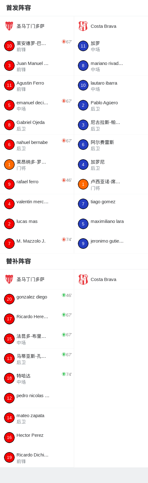 圣马丁门多萨0-0Costa Brava,双方握手言和