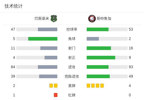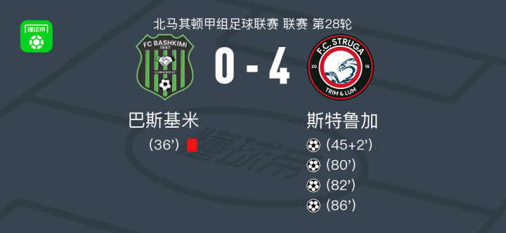 北京时间4月19日北马其顿甲组足球联赛 联赛 第28轮,巴斯基米主场对阵斯特鲁加。最终比分巴斯基米 0–4 斯特鲁加。