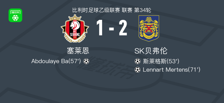 SK贝弗伦2-1塞莱恩,Lennart Mertens破门,斯莱格斯传射