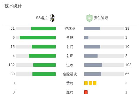 SS诺拉0-0费兰迪娜,双方互有攻守 足球资讯 发布时间: 2026年4月19日 阅读时间: 少于1 分钟 FacebookXPinterestWhatsApp SS诺拉0-0费兰迪娜,双方互有攻守 北京时间4月19日意大利丁级联赛,SS诺拉主场对阵费兰迪娜。最终比分SS诺拉 0–0 费兰迪娜。 点击查看本场比赛详细数据>> 精彩瞬间 第80分钟,费兰迪娜球队吃到红牌。 技术统计 FacebookXPinterestWhatsApp 1823100https://1823100.com 红单推荐 021 西甲 奥萨苏纳vs塞维利亚 红单推荐 2026年4月26日 013 英足总杯 切尔西(中)vs利兹联 红单推荐 2026年4月26日 023 英超 阿森纳vs纽卡斯尔 红单推荐 2026年4月25日 016 英超 狼队vs热刺 红单推荐 2026年4月25日 013 英超 桑德兰vs诺丁汉 红单推荐 2026年4月24日 热门资讯 官方:贺希宁当选本赛季CBA常规赛MVP 篮球资讯 2026年4月26日 阿贾克斯女足0-0费耶诺德女足,秋色平分 足球资讯 2026年4月26日 马竞官方:巴里奥斯左大腿肌肉受伤,回归时间取决于恢复情况 足球资讯 2026年4月26日 阿拉德纺织厂0-0康斯坦察灯塔,平分秋色 足球资讯 2026年4月26日 官方:上海队主帅卢伟当选本赛季CBA常规赛最佳教练员 篮球资讯 2026年4月26日
