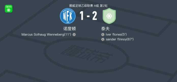 泰夫2-1诺度顿,sander finnoy、iver flones破门