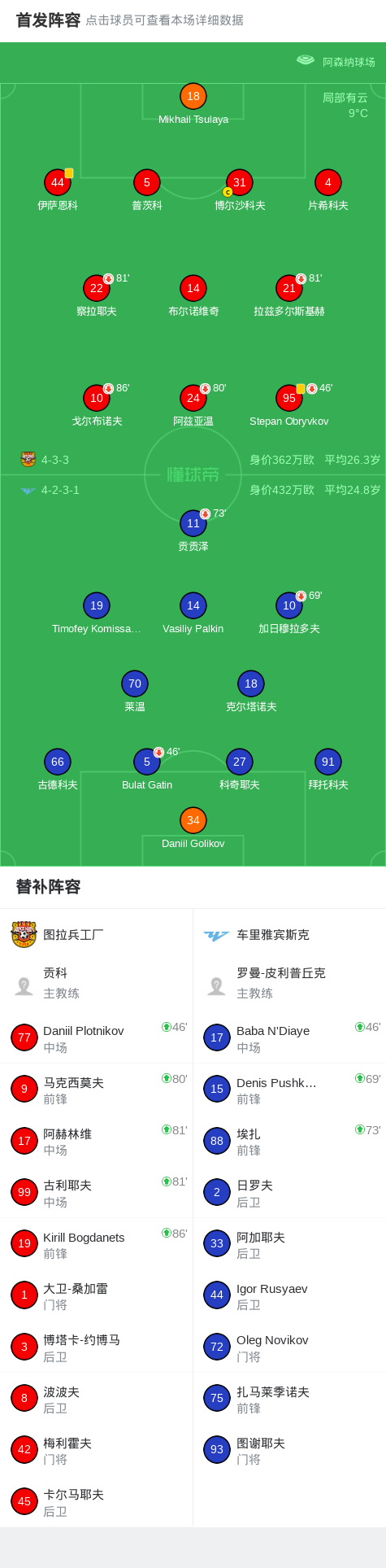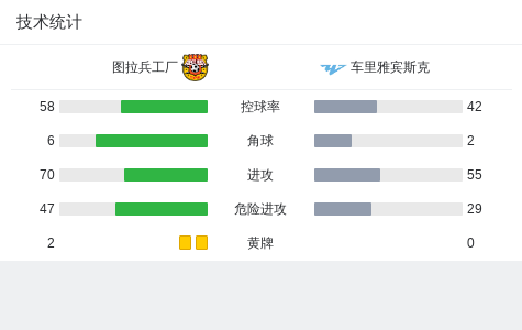 图拉兵工厂0-0车里雅宾斯克,秋色平分 足球资讯 发布时间: 2026年4月23日 阅读时间: 少于1 分钟 FacebookXPinterestWhatsApp 图拉兵工厂0-0车里雅宾斯克,秋色平分 北京时间4月23日俄罗斯足球甲级联赛 联赛 第30轮,图拉兵工厂主场对阵车里雅宾斯克。最终比分图拉兵工厂 0–0 车里雅宾斯克。 点击查看本场比赛详细数据>> 点击查看俄甲完整积分榜>> 球队阵容 技术统计 FacebookXPinterestWhatsApp 1823100https://1823100.com 红单推荐 005 西甲 巴列卡诺vs西班牙人 红单推荐 2026年4月23日 003 西甲 莱万特vs塞维利亚 红单推荐 2026年4月23日 015 西甲 巴萨vs塞尔塔 红单推荐 2026年4月22日 012 英超 伯恩茅斯vs利兹联 红单推荐 2026年4月22日 007 意杯 国际米兰vs科莫 红单推荐 2026年4月21日 热门资讯 萨拉戈萨U19 0-0乌德山U19,双方握手言和 足球资讯 2026年4月12日 019 英超 曼城vs阿森纳 红单推荐 2026年4月19日 007 英冠 伊普斯维奇vs米德尔斯堡 红单推荐 2026年4月19日 主裁判琼斯谈穆阿尼倒地未获点:桑德兰后卫明显先触球 足球资讯 2026年4月12日 郑大世:森保一执教风格很有人情味;日本队还得日本人执教 足球资讯 2026年4月23日