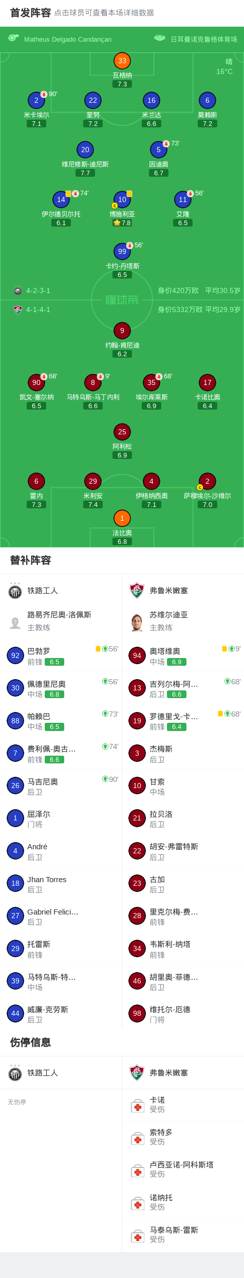 铁路工人0-0弗鲁米嫩塞,秋色平分 足球资讯 发布时间: 2026年4月24日 阅读时间: 少于1 分钟 FacebookXPinterestWhatsApp 铁路工人0-0弗鲁米嫩塞,秋色平分 北京时间4月24日巴西足球杯赛 第五轮首回合,铁路工人对阵弗鲁米嫩塞。最终比分铁路工人 0–0 弗鲁米嫩塞。 点击查看本场比赛详细数据>> 点击查看巴西杯完整积分榜>> 球队阵容 技术统计 FacebookXPinterestWhatsApp 1823100https://1823100.com 红单推荐 014 西甲 贝蒂斯vs皇马 红单推荐 2026年4月24日 005 西甲 巴列卡诺vs西班牙人 红单推荐 2026年4月23日 003 西甲 莱万特vs塞维利亚 红单推荐 2026年4月23日 015 西甲 巴萨vs塞尔塔 红单推荐 2026年4月22日 012 英超 伯恩茅斯vs利兹联 红单推荐 2026年4月22日 热门资讯 约基奇第198次三双!掘金大胜灰熊豪取10连胜 穆雷26+7+5 篮球资讯 2026年4月9日 三人20+!火箭21分逆转太阳7连胜 KD24分阿门22+11+8 篮球资讯 2026年4月8日 萨拉戈萨U19 0-0乌德山U19,双方握手言和 足球资讯 2026年4月12日 002 欧协联 巴列卡诺vs雅典AEK 红单推荐 2026年4月9日 004 欧冠 巴萨vs马竞 红单推荐 2026年4月8日