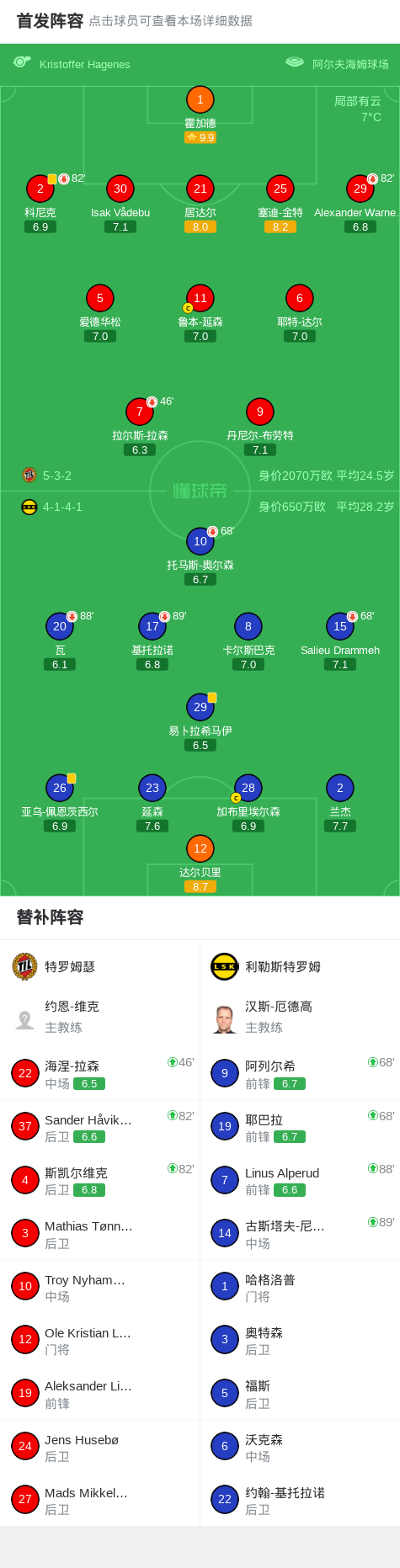 特罗姆瑟0-0利勒斯特罗姆,两队破门乏术 足球资讯 发布时间: 2026年4月16日 阅读时间: 少于1 分钟 FacebookXPinterestWhatsApp 特罗姆瑟0-0利勒斯特罗姆,两队破门乏术 北京时间4月16日挪威足球超级联赛 联赛 第15轮,特罗姆瑟主场对阵利勒斯特罗姆。最终比分特罗姆瑟 0–0 利勒斯特罗姆。 点击查看本场比赛详细数据>> 点击查看挪超完整积分榜>> 球队阵容 技术统计 FacebookXPinterestWhatsApp 1823100https://1823100.com 红单推荐 001 意甲 莱切vs佛罗伦萨 红单推荐 2026年4月20日 003 英超 水晶宫vs西汉姆联 红单推荐 2026年4月20日 019 英超 曼城vs阿森纳 红单推荐 2026年4月19日 007 英冠 伊普斯维奇vs米德尔斯堡 红单推荐 2026年4月19日 009 挪超 博德闪耀vs奥勒松 红单推荐 2026年4月18日 热门资讯 001 欧联杯 塞尔塔vs弗莱堡 红单推荐 2026年4月16日 002 欧联 诺丁汉vs波尔图 红单推荐 2026年4月16日 雷帕斯3-2逆转基芬,oliver helttunen、Timur Saltykov破门 足球资讯 2026年4月19日 阿韦洛亚:卡马文加拥有我和俱乐部的信任,希望他待很多年 足球资讯 2026年4月20日 还能这么玩,奥德里奥索拉夺冠后把女儿塞进了国王杯奖杯里 足球资讯 2026年4月20日