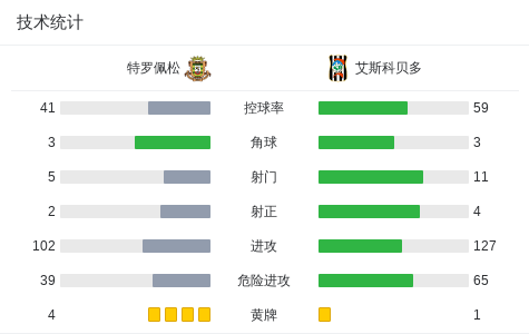 特罗佩松0-0艾斯科贝多,双方破门乏术 足球资讯 发布时间: 2026年4月20日 阅读时间: 少于1 分钟 FacebookXPinterestWhatsApp 特罗佩松0-0艾斯科贝多,平分秋色 北京时间4月19日西班牙丙级联赛 西丁3组 第31轮,特罗佩松主场对阵艾斯科贝多。最终比分特罗佩松 0–0 艾斯科贝多。 点击查看本场比赛详细数据>> 技术统计 FacebookXPinterestWhatsApp 1823100https://1823100.com 红单推荐 005 西甲 巴列卡诺vs西班牙人 红单推荐 2026年4月23日 003 西甲 莱万特vs塞维利亚 红单推荐 2026年4月23日 015 西甲 巴萨vs塞尔塔 红单推荐 2026年4月22日 012 英超 伯恩茅斯vs利兹联 红单推荐 2026年4月22日 007 意杯 国际米兰vs科莫 红单推荐 2026年4月21日 热门资讯 萨拉戈萨U19 0-0乌德山U19,双方握手言和 足球资讯 2026年4月12日 007 英冠 伊普斯维奇vs米德尔斯堡 红单推荐 2026年4月19日 019 英超 曼城vs阿森纳 红单推荐 2026年4月19日 三人20+!火箭21分逆转太阳7连胜 KD24分阿门22+11+8 篮球资讯 2026年4月8日 萨拉赫安菲尔德英超进108球,联赛历史单座球场进球仅次于亨利 足球资讯 2026年4月12日