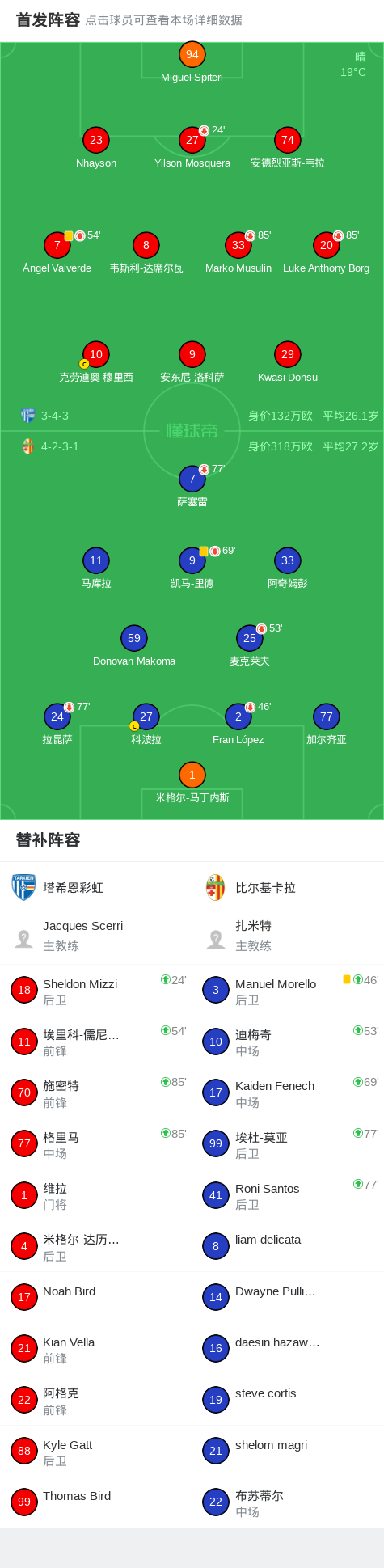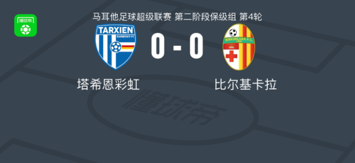 塔希恩彩虹0-0比尔基卡拉,秋色平分 足球资讯 发布时间: 2026年4月25日 阅读时间: 少于1 分钟 FacebookXPinterestWhatsApp 塔希恩彩虹0-0比尔基卡拉,秋色平分 北京时间4月25日马耳他足球超级联赛 第二阶段保级组 第4轮,塔希恩彩虹主场对阵比尔基卡拉。最终比分塔希恩彩虹 0–0 比尔基卡拉。 点击查看本场比赛详细数据>> 点击查看马耳甲完整积分榜>> 球队阵容 技术统计 FacebookXPinterestWhatsApp 1823100https://1823100.com 红单推荐 021 西甲 奥萨苏纳vs塞维利亚 红单推荐 2026年4月26日 013 英足总杯 切尔西(中)vs利兹联 红单推荐 2026年4月26日 023 英超 阿森纳vs纽卡斯尔 红单推荐 2026年4月25日 016 英超 狼队vs热刺 红单推荐 2026年4月25日 013 英超 桑德兰vs诺丁汉 红单推荐 2026年4月24日 热门资讯 马竞官方:巴里奥斯左大腿肌肉受伤,回归时间取决于恢复情况 足球资讯 2026年4月26日 阿贾克斯女足0-0费耶诺德女足,秋色平分 足球资讯 2026年4月26日 阿拉德纺织厂0-0康斯坦察灯塔,平分秋色 足球资讯 2026年4月26日 官方:贺希宁当选本赛季CBA常规赛MVP 篮球资讯 2026年4月26日 官方:上海队主帅卢伟当选本赛季CBA常规赛最佳教练员 篮球资讯 2026年4月26日