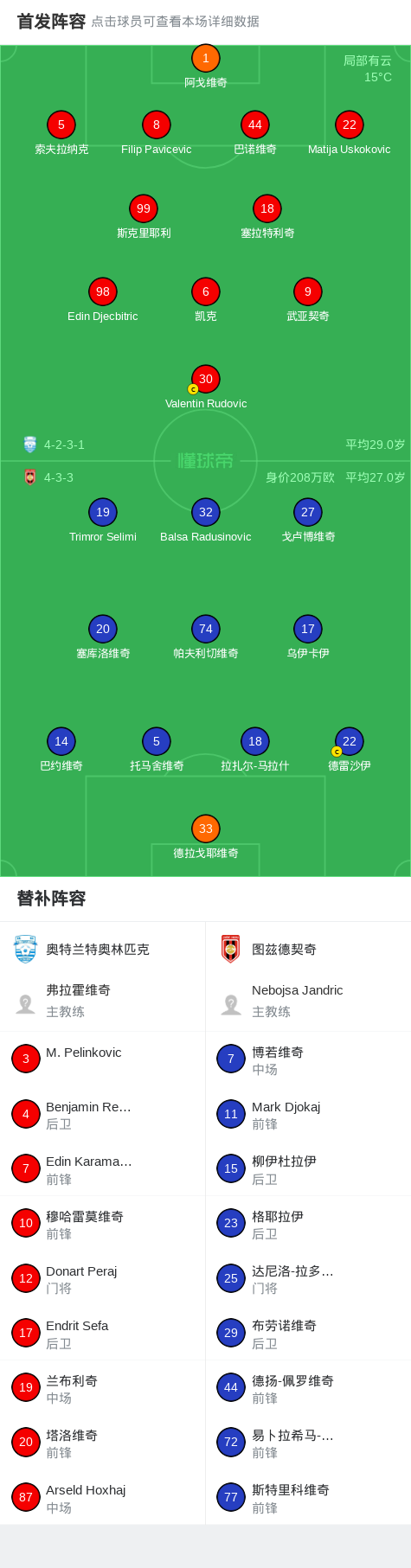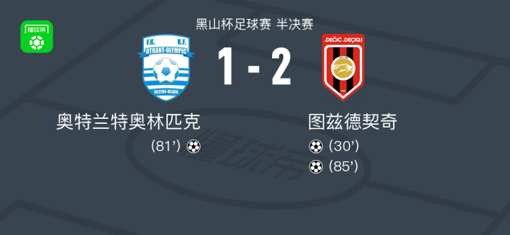 图兹德契奇2-1奥特兰特奥林匹克 足球资讯 发布时间: 2026年4月23日 阅读时间: 少于1 分钟 FacebookXPinterestWhatsApp 图兹德契奇2-1奥特兰特奥林匹克 北京时间4月22日黑山杯足球赛 半决赛,奥特兰特奥林匹克对阵图兹德契奇。最终比分奥特兰特奥林匹克 1–2 图兹德契奇。 点击查看本场比赛详细数据>> 精彩瞬间 第30分钟,图兹德契奇球员打入一球。 第81分钟,奥特兰特奥林匹克球员打入一球。 第85分钟,图兹德契奇球员打入一球。 球队阵容 技术统计 FacebookXPinterestWhatsApp 1823100https://1823100.com 红单推荐 023 英超 阿森纳vs纽卡斯尔 红单推荐 2026年4月25日 016 英超 狼队vs热刺 红单推荐 2026年4月25日 013 英超 桑德兰vs诺丁汉 红单推荐 2026年4月24日 014 西甲 贝蒂斯vs皇马 红单推荐 2026年4月24日 005 西甲 巴列卡诺vs西班牙人 红单推荐 2026年4月23日 热门资讯 三人20+!火箭21分逆转太阳7连胜 KD24分阿门22+11+8 篮球资讯 2026年4月8日 013 英超 桑德兰vs诺丁汉 红单推荐 2026年4月24日 约基奇第198次三双!掘金大胜灰熊豪取10连胜 穆雷26+7+5 篮球资讯 2026年4月9日 005 西甲 巴列卡诺vs西班牙人 红单推荐 2026年4月23日 002 欧协联 巴列卡诺vs雅典AEK 红单推荐 2026年4月9日
