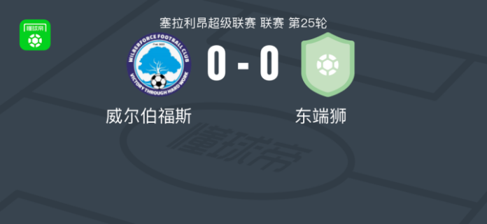 签到 欢迎!登录你的帐户 您的用户名 您的密码 忘记密码了吗?得到帮助 创建一个帐户 创建一个帐户 欢迎!注册一个帐户 您的电子邮件 您的用户名 密码将通过电子邮件发送给您。 找回密码 恢复您的密码 您的电子邮件 密码将通过电子邮件发送给您。 威尔伯福斯0-0东端狮,平分秋色 足球资讯 发布时间: 2026年4月27日 威尔伯福斯0-0东端狮,平分秋色 北京时间4月27日塞拉利昂超级联赛 联赛 第25轮,威尔伯福斯主场对阵东端狮。最终比分威尔伯福斯 0–0 东端狮。 点击查看本场比赛详细数据>> 技术统计 留下评论 登录后即可发表评论 评论 (0)还没有人留下宝贵的评论~ 红单推荐 003 英冠 南安普顿vs伊普斯维奇 红单推荐 2026年4月28日 0 004 欧冠 巴黎圣曼vs拜仁 红单推荐 2026年4月28日 0 007 英超 曼联vs布伦特 红单推荐 2026年4月27日 0 008 西甲 西班牙人vs莱万特 红单推荐 2026年4月27日 0 021 西甲 奥萨苏纳vs塞维利亚 红单推荐 2026年4月26日 0 热门资讯 马鲁特联7-0狂胜PSBS巴克伦佛,戴维-席尔瓦梅开二度,毛拉纳双响 足球资讯 2026年4月28日 0 001 欧联杯 塞尔塔vs弗莱堡 红单推荐 2026年4月16日 0 004 欧冠 巴黎圣曼vs拜仁 红单推荐 2026年4月28日 0 001 意甲 莱切vs佛罗伦萨 红单推荐 2026年4月20日 0 006 欧冠 拜仁vs皇马 红单推荐 2026年4月15日 0
