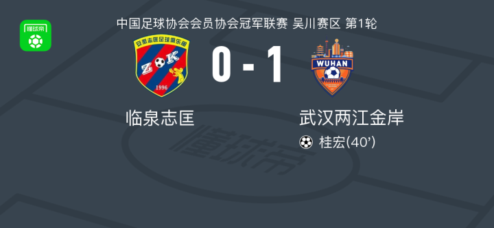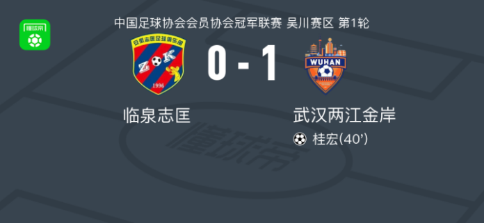 武汉两江金岸1-0临泉志匡,桂宏一剑封喉 足球资讯 发布时间: 2026年4月21日 阅读时间: 少于1 分钟 FacebookXPinterestWhatsApp 武汉两江金岸1-0临泉志匡,桂宏一剑封喉 北京时间4月21日中国足球协会会员协会冠军联赛 吴川赛区 第1轮,临泉志匡主场对阵武汉两江金岸。武汉两江金岸桂宏破门。最终比分临泉志匡 0–1 武汉两江金岸。 点击查看本场比赛详细数据>> 点击查看中冠完整积分榜>> 精彩瞬间 第40分钟,武汉两江金岸球员桂宏打入一球。 FacebookXPinterestWhatsApp 1823100https://1823100.com 红单推荐 007 意杯 国际米兰vs科莫 红单推荐 2026年4月21日 005 西甲 毕尔巴鄂竞技vs奥萨苏纳 红单推荐 2026年4月21日 001 意甲 莱切vs佛罗伦萨 红单推荐 2026年4月20日 003 英超 水晶宫vs西汉姆联 红单推荐 2026年4月20日 019 英超 曼城vs阿森纳 红单推荐 2026年4月19日 热门资讯 001 意甲 莱切vs佛罗伦萨 红单推荐 2026年4月20日 023 英超 利物浦vs富勒姆 红单推荐 2026年4月11日 019 英超 曼城vs阿森纳 红单推荐 2026年4月19日 007 意杯 国际米兰vs科莫 红单推荐 2026年4月21日 007 英冠 伊普斯维奇vs米德尔斯堡 红单推荐 2026年4月19日