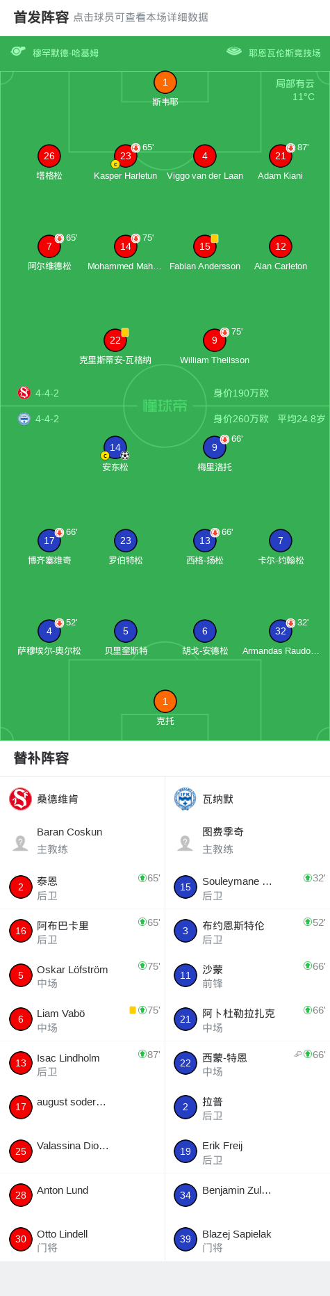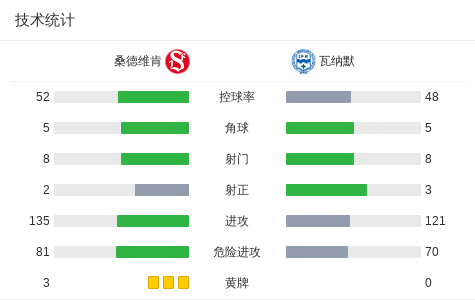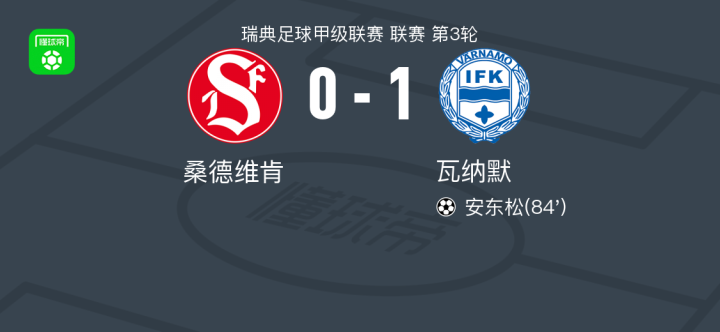 瓦纳默1-0桑德维肯,安东松绝杀 足球资讯 发布时间: 2026年4月19日 阅读时间: 少于1 分钟 FacebookXPinterestWhatsApp 瓦纳默1-0桑德维肯,安东松绝杀 北京时间4月18日瑞典足球甲级联赛 联赛 第3轮,桑德维肯主场对阵瓦纳默。瓦纳默安东松破门。最终比分桑德维肯 0–1 瓦纳默。 点击查看本场比赛详细数据>> 点击查看瑞典甲完整积分榜>> 精彩瞬间 第84分钟,瓦纳默球员西蒙-特恩助攻安东松打入一球。 球队阵容 技术统计 FacebookXPinterestWhatsApp 1823100https://1823100.com 红单推荐 013 英超 桑德兰vs诺丁汉 红单推荐 2026年4月24日 014 西甲 贝蒂斯vs皇马 红单推荐 2026年4月24日 005 西甲 巴列卡诺vs西班牙人 红单推荐 2026年4月23日 003 西甲 莱万特vs塞维利亚 红单推荐 2026年4月23日 015 西甲 巴萨vs塞尔塔 红单推荐 2026年4月22日 热门资讯 约基奇第198次三双!掘金大胜灰熊豪取10连胜 穆雷26+7+5 篮球资讯 2026年4月9日 三人20+!火箭21分逆转太阳7连胜 KD24分阿门22+11+8 篮球资讯 2026年4月8日 萨拉戈萨U19 0-0乌德山U19,双方握手言和 足球资讯 2026年4月12日 002 欧协联 巴列卡诺vs雅典AEK 红单推荐 2026年4月9日 004 欧冠 巴萨vs马竞 红单推荐 2026年4月8日