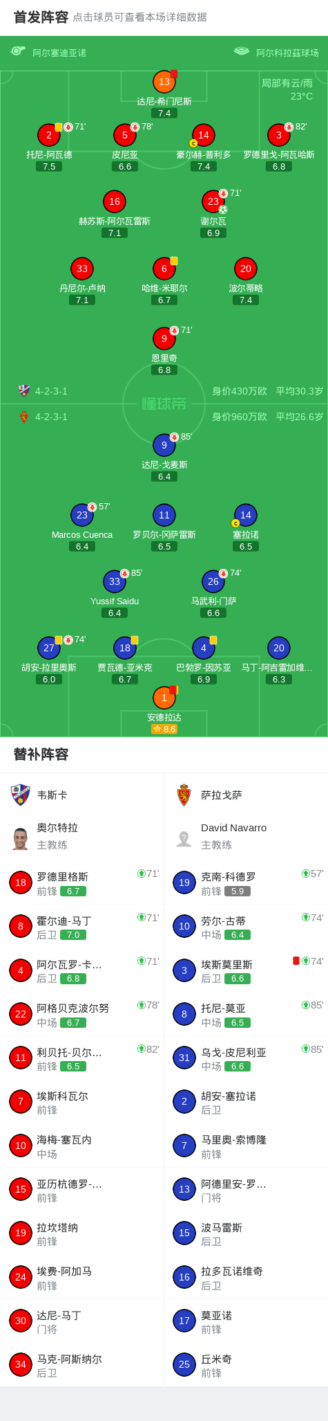 下半场补时第8分钟,萨拉戈萨球队安德拉达吃到第二张黄牌。