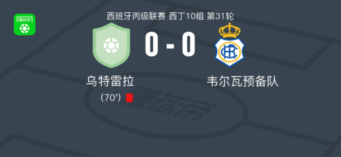 乌特雷拉0-0韦尔瓦预备队,双方互交白卷 足球资讯 发布时间: 2026年4月19日 阅读时间: 少于1 分钟 FacebookXPinterestWhatsApp 乌特雷拉0-0韦尔瓦预备队,双方互交白卷 北京时间4月19日西班牙丙级联赛 西丁10组 第31轮,乌特雷拉主场对阵韦尔瓦预备队。最终比分乌特雷拉 0–0 韦尔瓦预备队。 点击查看本场比赛详细数据>> 精彩瞬间 第70分钟,乌特雷拉球队吃到红牌。 技术统计 FacebookXPinterestWhatsApp 1823100https://1823100.com 红单推荐 005 西甲 巴列卡诺vs西班牙人 红单推荐 2026年4月23日 003 西甲 莱万特vs塞维利亚 红单推荐 2026年4月23日 015 西甲 巴萨vs塞尔塔 红单推荐 2026年4月22日 012 英超 伯恩茅斯vs利兹联 红单推荐 2026年4月22日 007 意杯 国际米兰vs科莫 红单推荐 2026年4月21日 热门资讯 萨拉戈萨U19 0-0乌德山U19,双方握手言和 足球资讯 2026年4月12日 019 英超 曼城vs阿森纳 红单推荐 2026年4月19日 007 英冠 伊普斯维奇vs米德尔斯堡 红单推荐 2026年4月19日 主裁判琼斯谈穆阿尼倒地未获点:桑德兰后卫明显先触球 足球资讯 2026年4月12日 郑大世:森保一执教风格很有人情味;日本队还得日本人执教 足球资讯 2026年4月23日