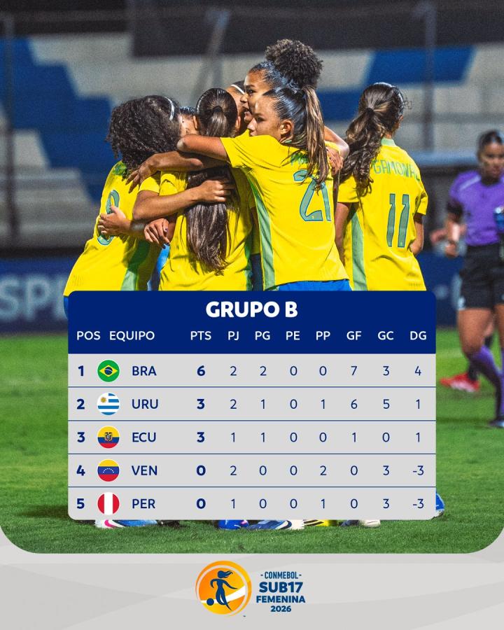 北京时间4月26日早7点,2026年南美U17女足锦标赛小组赛B组2轮,巴西队5-3击败委内瑞拉队,收获两连胜。