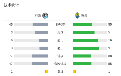 第51分钟,谢夫球员巴吉耶打入一球。