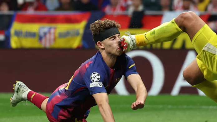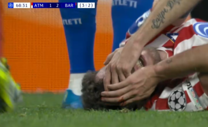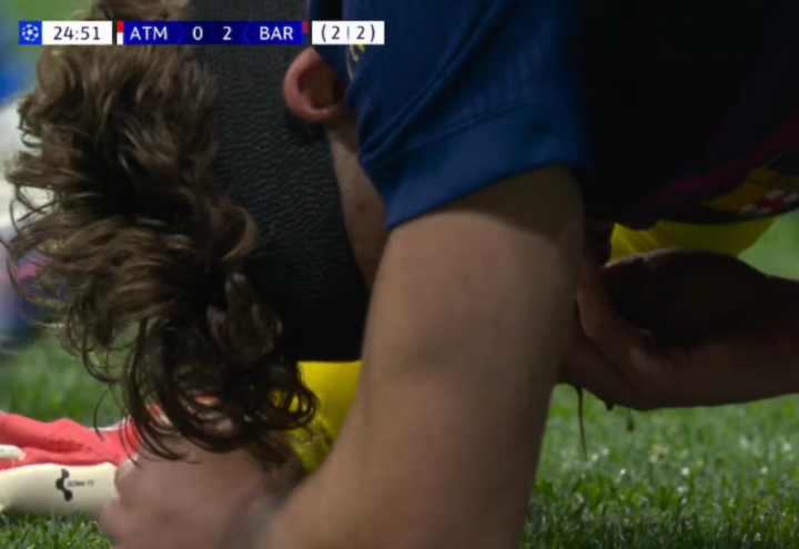 而在马竞对阵巴萨比赛的上半场第24分钟,发生了一次让巴萨全队和球迷都揪心的场面。