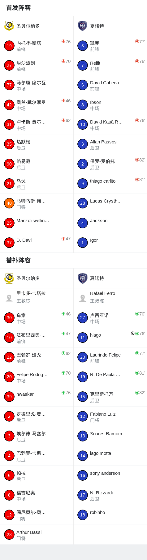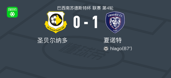 夏诺特1-0圣贝尔纳多,hiago绝杀 足球资讯 发布时间: 2026年4月16日 阅读时间: 少于1 分钟 FacebookXPinterestWhatsApp 夏诺特1-0圣贝尔纳多,hiago绝杀 北京时间4月16日巴西南苏德斯特杯 联赛 第4轮,圣贝尔纳多对阵夏诺特。夏诺特hiago破门。最终比分圣贝尔纳多 0–1 夏诺特。 点击查看本场比赛详细数据>> 精彩瞬间 第87分钟,夏诺特球员hiago打入一球。 球队阵容 技术统计 FacebookXPinterestWhatsApp 1823100https://1823100.com 红单推荐 001 意甲 莱切vs佛罗伦萨 红单推荐 2026年4月20日 003 英超 水晶宫vs西汉姆联 红单推荐 2026年4月20日 019 英超 曼城vs阿森纳 红单推荐 2026年4月19日 007 英冠 伊普斯维奇vs米德尔斯堡 红单推荐 2026年4月19日 009 挪超 博德闪耀vs奥勒松 红单推荐 2026年4月18日 热门资讯 约基奇第198次三双!掘金大胜灰熊豪取10连胜 穆雷26+7+5 篮球资讯 2026年4月9日 001 意甲 莱切vs佛罗伦萨 红单推荐 2026年4月20日 003 英超 水晶宫vs西汉姆联 红单推荐 2026年4月20日 布古尼0-0非洲足球精英,平分秋色 足球资讯 2026年4月16日 表现简评:阿森纳中卫萨利巴vs曼城 足球资讯 2026年4月20日