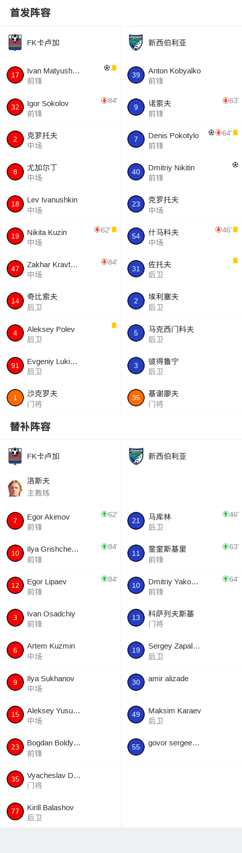 第84分钟,新西伯利亚球员Dmitriy Nikitin打入一球。