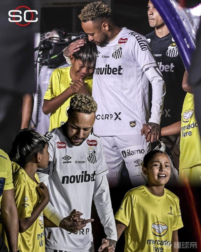 比赛开始前,现场的小球童在见到内马尔后激动落泪,内马尔则将其抱在怀中。