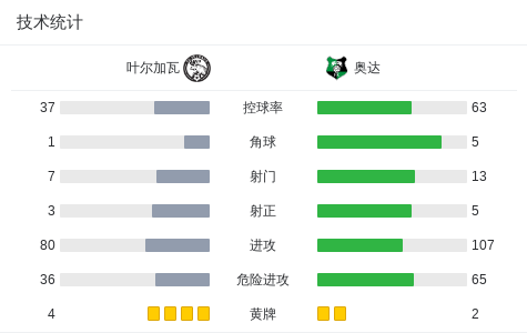 第34分钟,奥达球员达斯克维奇斯助攻Josué Vergara打入一球。