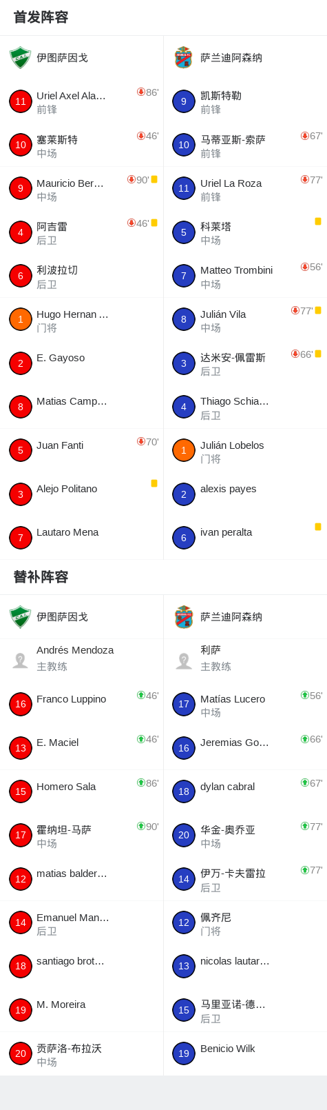 意杜萨高0-0萨兰迪阿森纳,秋色平分 足球资讯 发布时间: 2026年4月15日 阅读时间: 少于1 分钟 FacebookXPinterestWhatsApp 意杜萨高0-0萨兰迪阿森纳,秋色平分 北京时间4月15日阿根廷足球乙级大都会区联赛 春季联赛 第11轮,伊图萨因戈主场对阵萨兰迪阿森纳。最终比分意杜萨高 0–0 萨兰迪阿森纳。 点击查看本场比赛详细数据>> 球队阵容 技术统计 FacebookXPinterestWhatsApp 1823100https://1823100.com 红单推荐 005 西甲 巴列卡诺vs西班牙人 红单推荐 2026年4月23日 003 西甲 莱万特vs塞维利亚 红单推荐 2026年4月23日 015 西甲 巴萨vs塞尔塔 红单推荐 2026年4月22日 012 英超 伯恩茅斯vs利兹联 红单推荐 2026年4月22日 007 意杯 国际米兰vs科莫 红单推荐 2026年4月21日 热门资讯 萨拉戈萨U19 0-0乌德山U19,双方握手言和 足球资讯 2026年4月12日 007 英冠 伊普斯维奇vs米德尔斯堡 红单推荐 2026年4月19日 萨拉赫安菲尔德英超进108球,联赛历史单座球场进球仅次于亨利 足球资讯 2026年4月12日 主裁判琼斯谈穆阿尼倒地未获点:桑德兰后卫明显先触球 足球资讯 2026年4月12日 萨拉赫英超打入157粒非点球进球,追平阿圭罗列历史第五 足球资讯 2026年4月12日