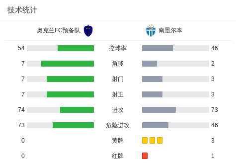 奥克兰FC预备队3-2南墨尔本,罗南-温、埃利斯建功