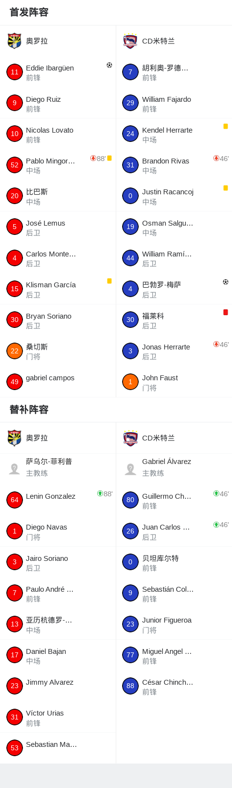 奥罗拉1-1CD米特兰,Eddie Ibargüen先拔头筹,巴勃罗-梅萨救主