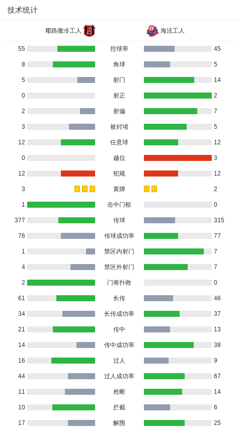 耶路撒冷工人0-0海法工人,两队破门乏术