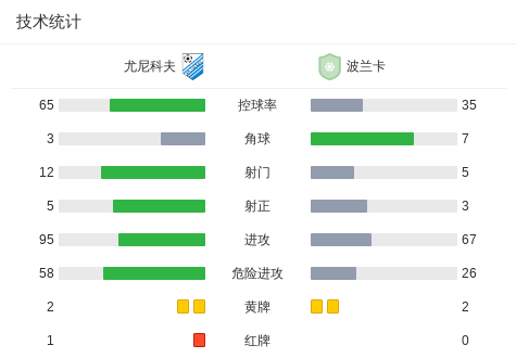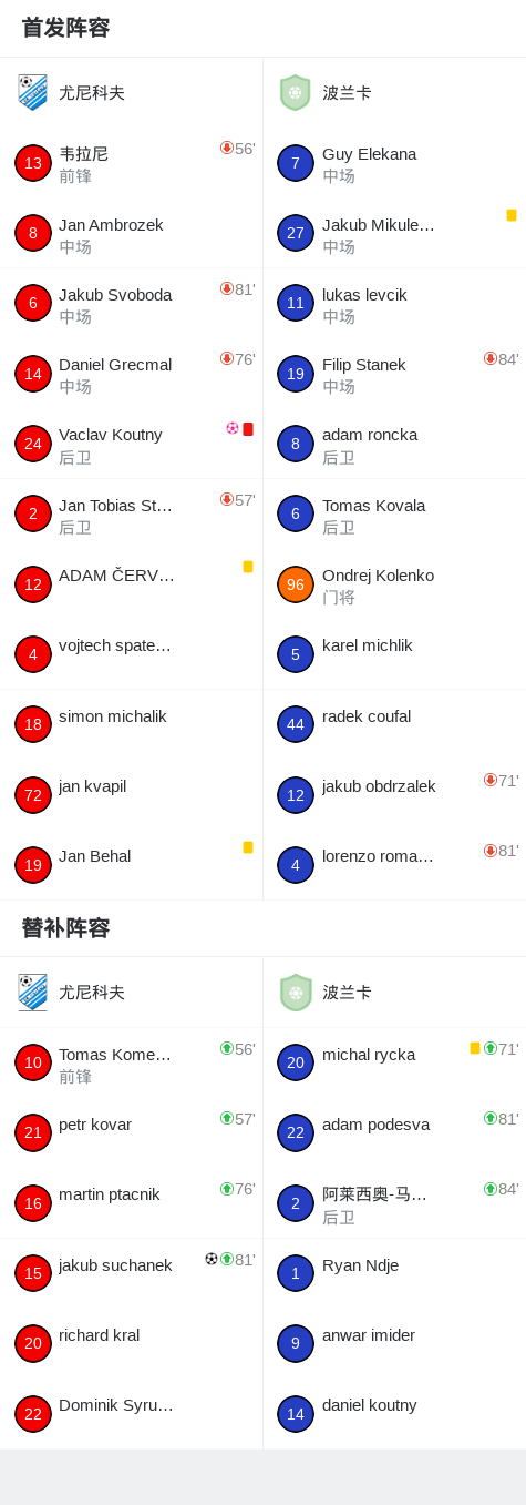 下半场补时第4分钟,尤尼科夫球队Vaclav Koutny吃到红牌。