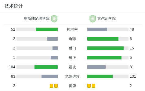 奥斯陆足球学院0-0古尔瓦学院,秋色平分 足球资讯 发布时间: 2026年4月21日 阅读时间: 少于1 分钟 FacebookXPinterestWhatsApp 奥斯陆足球学院0-0古尔瓦学院,秋色平分 北京时间4月21日塞内加尔甲级联赛,奥斯陆足球学院对阵古尔瓦学院。最终比分奥斯陆足球学院 0–0 古尔瓦学院。 点击查看本场比赛详细数据>> 技术统计 FacebookXPinterestWhatsApp 1823100https://1823100.com 红单推荐 007 意杯 国际米兰vs科莫 红单推荐 2026年4月21日 005 西甲 毕尔巴鄂竞技vs奥萨苏纳 红单推荐 2026年4月21日 001 意甲 莱切vs佛罗伦萨 红单推荐 2026年4月20日 003 英超 水晶宫vs西汉姆联 红单推荐 2026年4月20日 019 英超 曼城vs阿森纳 红单推荐 2026年4月19日 热门资讯 001 欧联杯 塞尔塔vs弗莱堡 红单推荐 2026年4月16日 002 欧联 诺丁汉vs波尔图 红单推荐 2026年4月16日 雷帕斯3-2逆转基芬,oliver helttunen、Timur Saltykov破门 足球资讯 2026年4月19日 马竞官方:为避免受伤,卢克曼和瑟洛特暂时进行单独训练 足球资讯 2026年4月20日 铁人文明观赛倡议书:同心兴东北,场上是对手,场下是兄弟 足球资讯 2026年4月20日