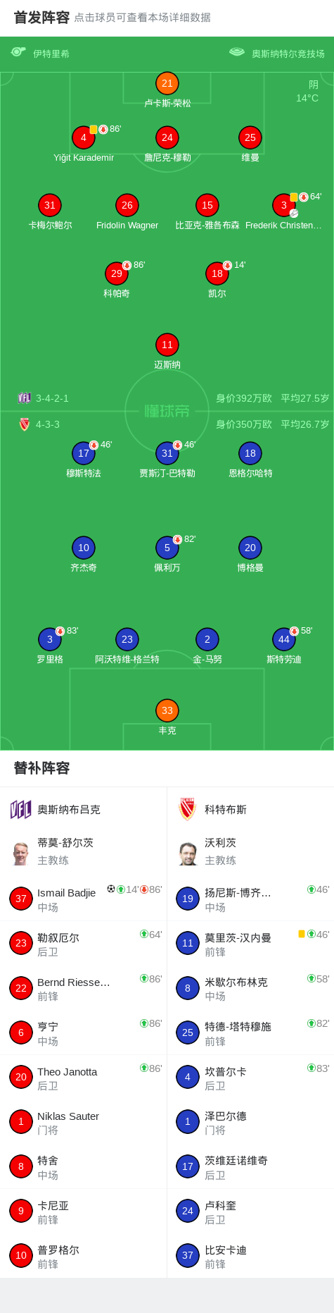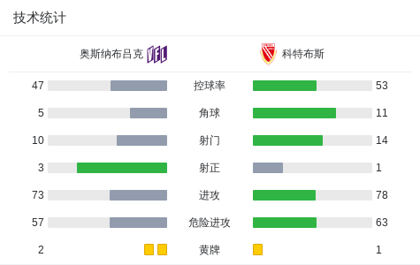 第50分钟,奥斯纳布吕克球员Frederik Christensen助攻Ismail Badjie打入一球。