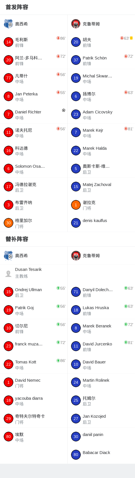 奥西希1-0克鲁蒂姆,Daniel Richter一锤定音 足球资讯 发布时间: 2026年4月16日 阅读时间: 少于1 分钟 FacebookXPinterestWhatsApp 奥西希1-0克鲁蒂姆,Daniel Richter一锤定音 北京时间4月16日捷克足球全国联赛 联赛 第23轮,奥西希主场对阵克鲁蒂姆。奥西希Daniel Richter破门。最终比分奥西希 1–0 克鲁蒂姆。 点击查看本场比赛详细数据>> 精彩瞬间 第70分钟,奥西希球员Daniel Richter打入一球。 球队阵容 技术统计 FacebookXPinterestWhatsApp 1823100https://1823100.com 红单推荐 001 意甲 莱切vs佛罗伦萨 红单推荐 2026年4月20日 003 英超 水晶宫vs西汉姆联 红单推荐 2026年4月20日 019 英超 曼城vs阿森纳 红单推荐 2026年4月19日 007 英冠 伊普斯维奇vs米德尔斯堡 红单推荐 2026年4月19日 009 挪超 博德闪耀vs奥勒松 红单推荐 2026年4月18日 热门资讯 约基奇第198次三双!掘金大胜灰熊豪取10连胜 穆雷26+7+5 篮球资讯 2026年4月9日 002 欧协联 巴列卡诺vs雅典AEK 红单推荐 2026年4月9日 013 英超 西汉姆联vs狼队 红单推荐 2026年4月10日 003 欧冠 利物浦vs巴黎圣日耳曼 红单推荐 2026年4月14日 006 欧冠 拜仁vs皇马 红单推荐 2026年4月15日