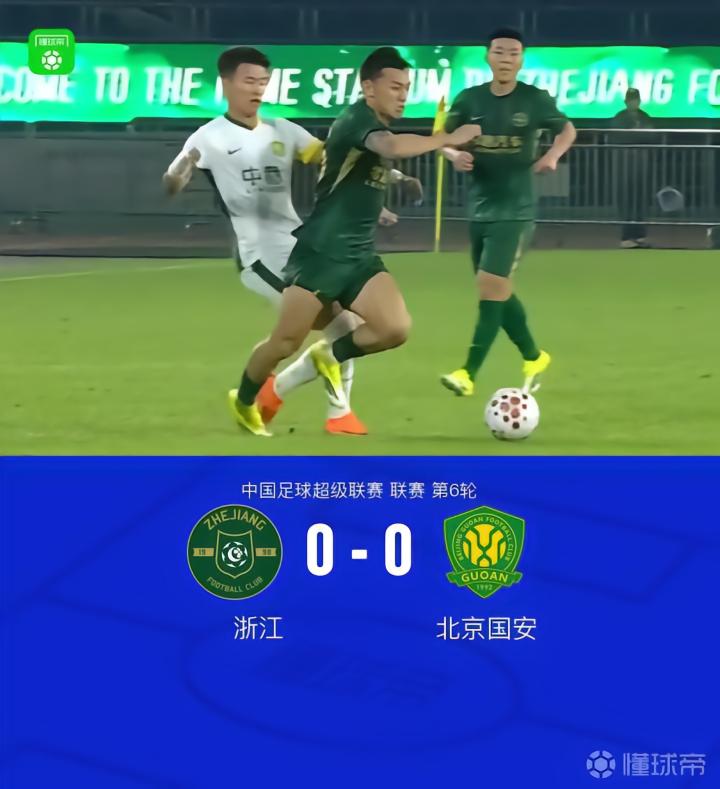 【浙江0-0国安,两队“互啄”整场机会寥寥,陶强龙失良机】